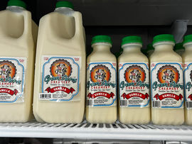 Inside, you’ll find our rich, whole cream-line milk, delicious chocolate milk, and a rotating selection of seasonal flavors like Cookies and Cream, Strawberry, Moo-Caccino, Vanilla, and Chocolate Peanut Butter. Treat yourself to our homemade ice cream—served in a cup or cone—or take some home to enjoy later.